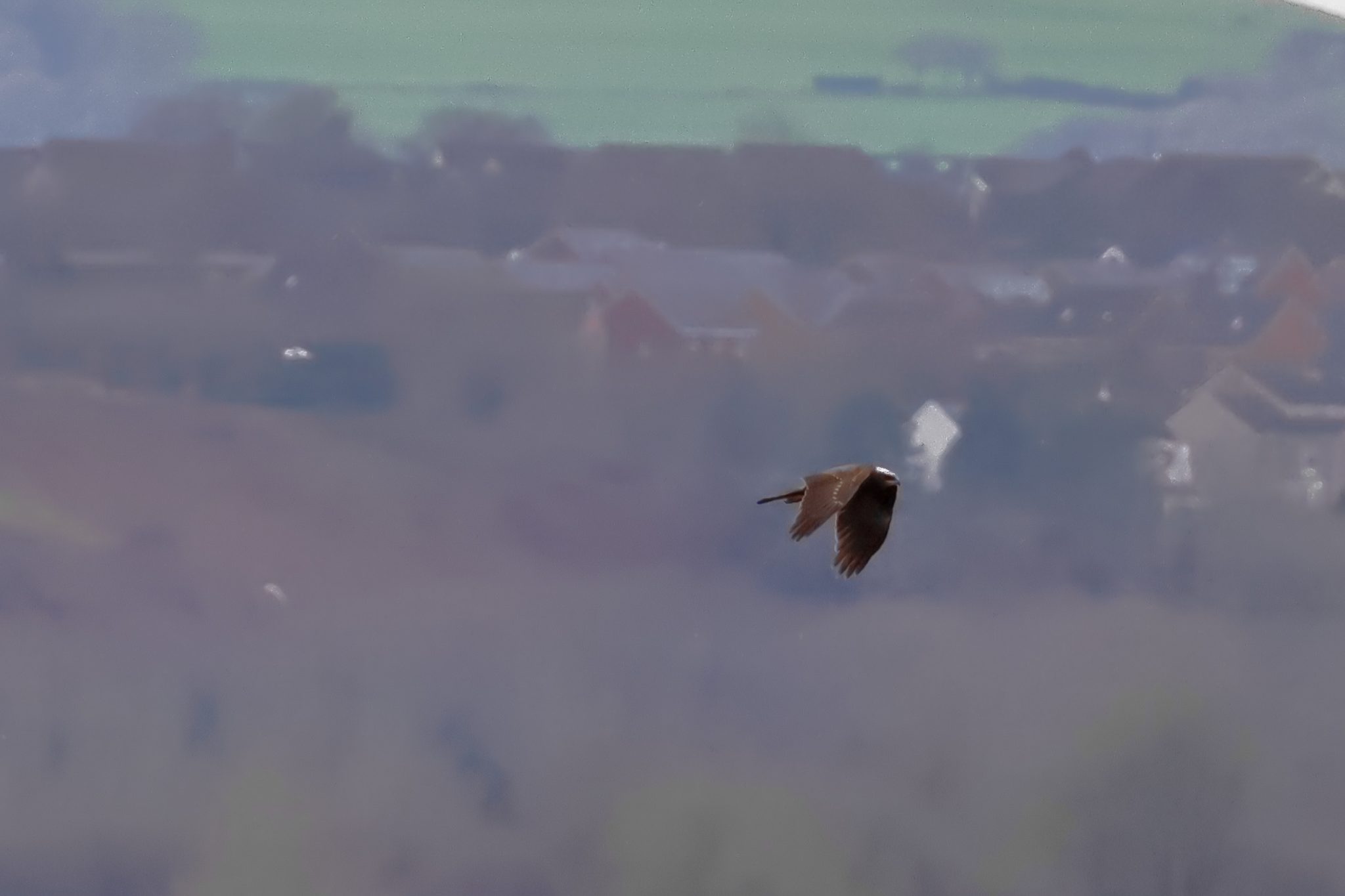 Female Marsh Harrier today over the marsh between Crofty and Penclawdd