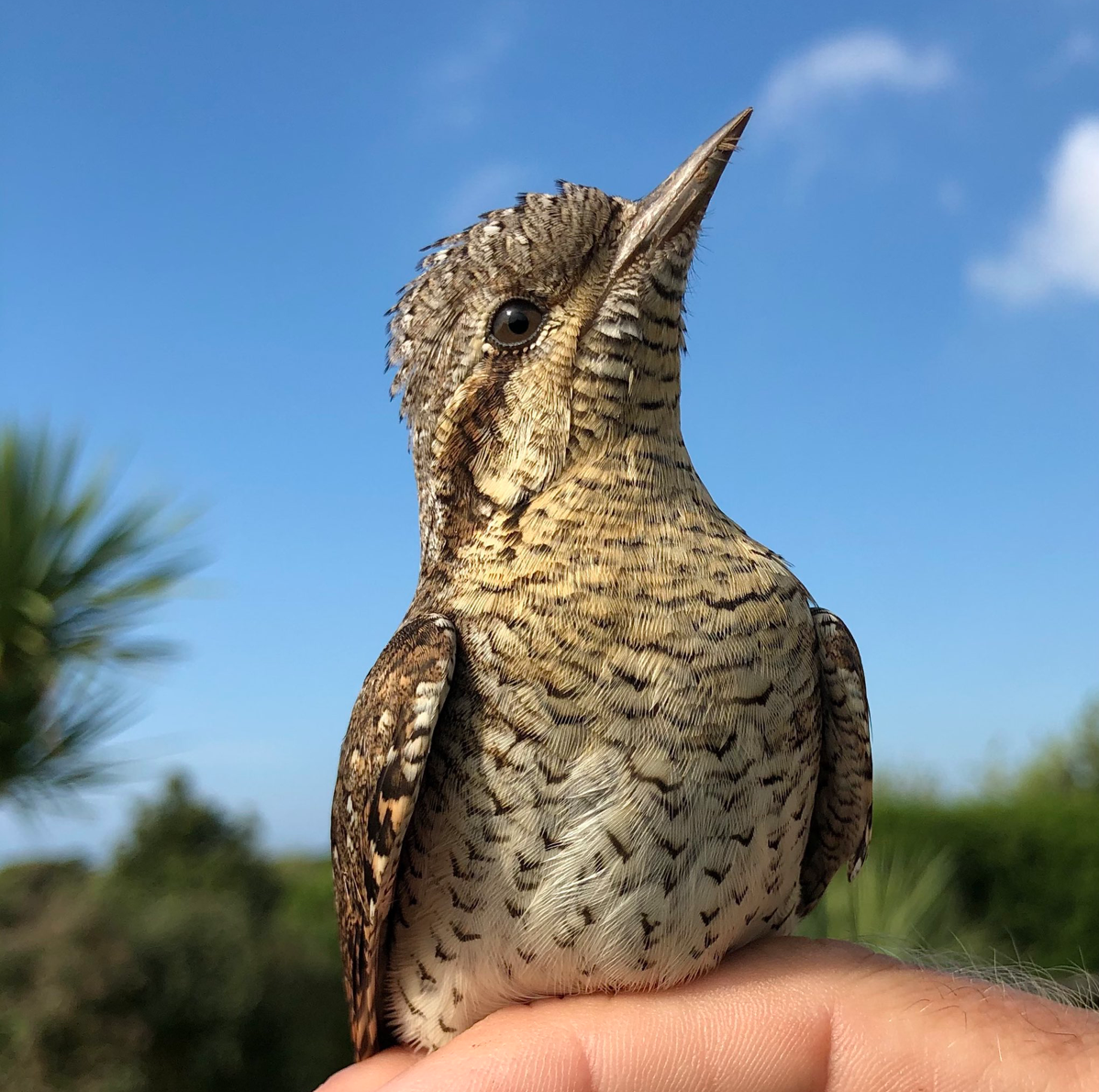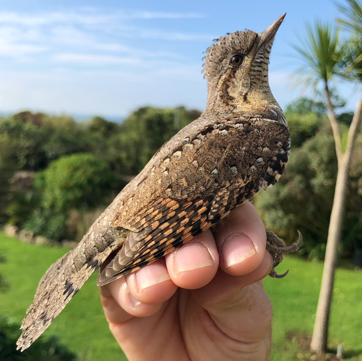 Wryneck ringed by Richard Dann in his garden on Pennard Cliffs this morning..