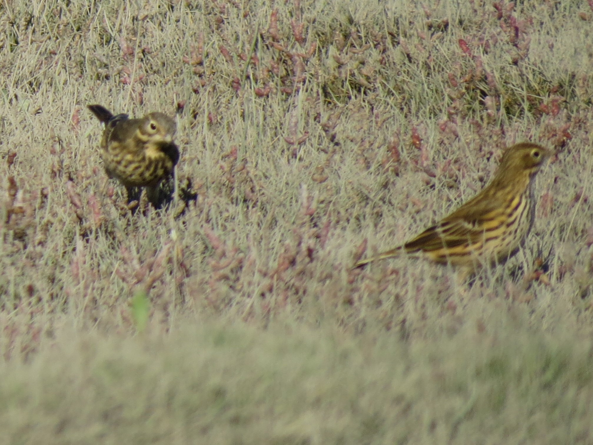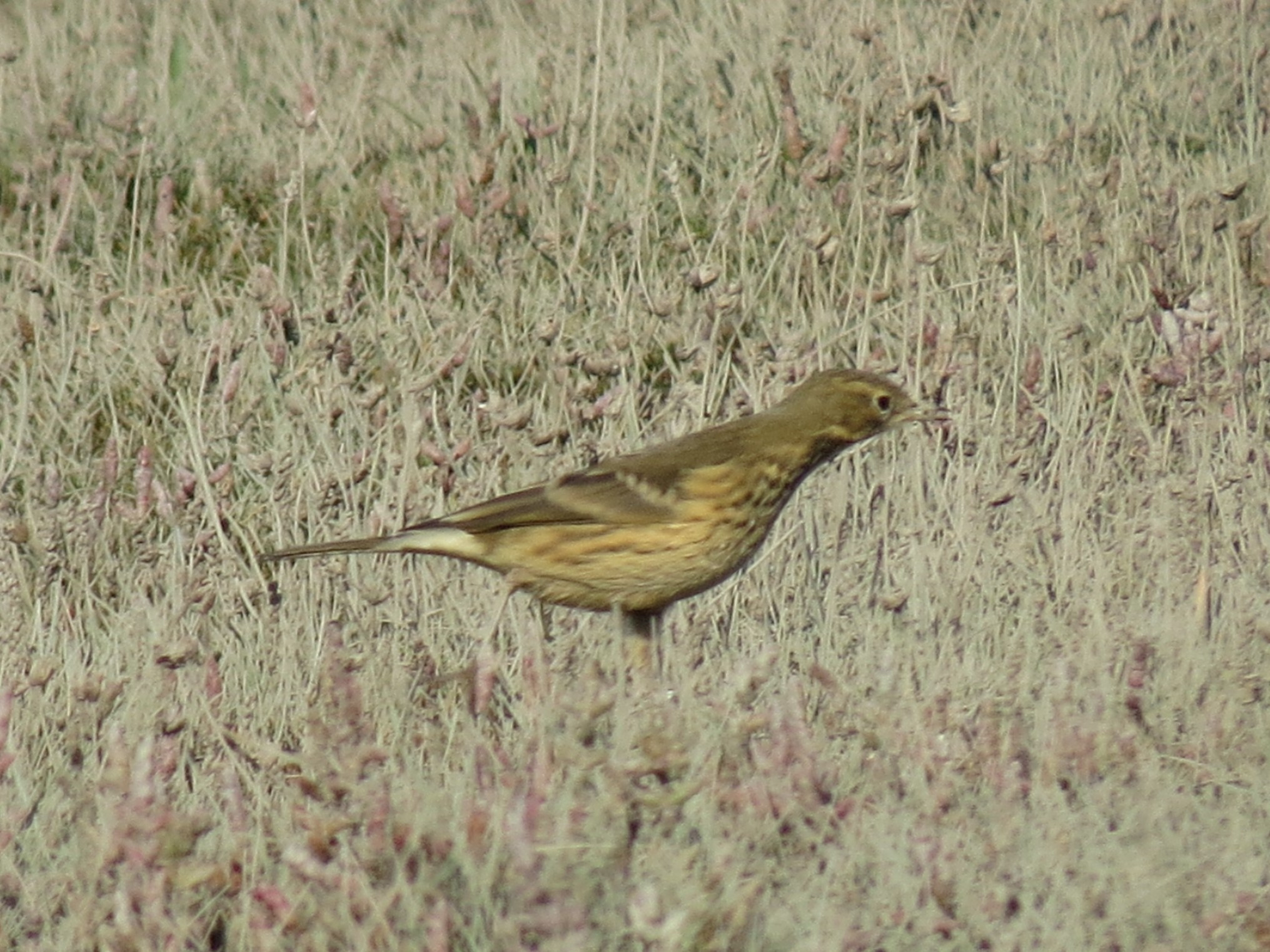 A few pics of the Buff bellied Pipit at the Weobley track (- which I hear was relocated at 5pm today -400m west of where it was yesterday). I actually first heard it on the 8th but only 3 times.I then searched for it on the 9th with the parabola but could not refind it so I had thought it had gone. So I was very pleased when i came across it on the Saltmarsh yesterday!