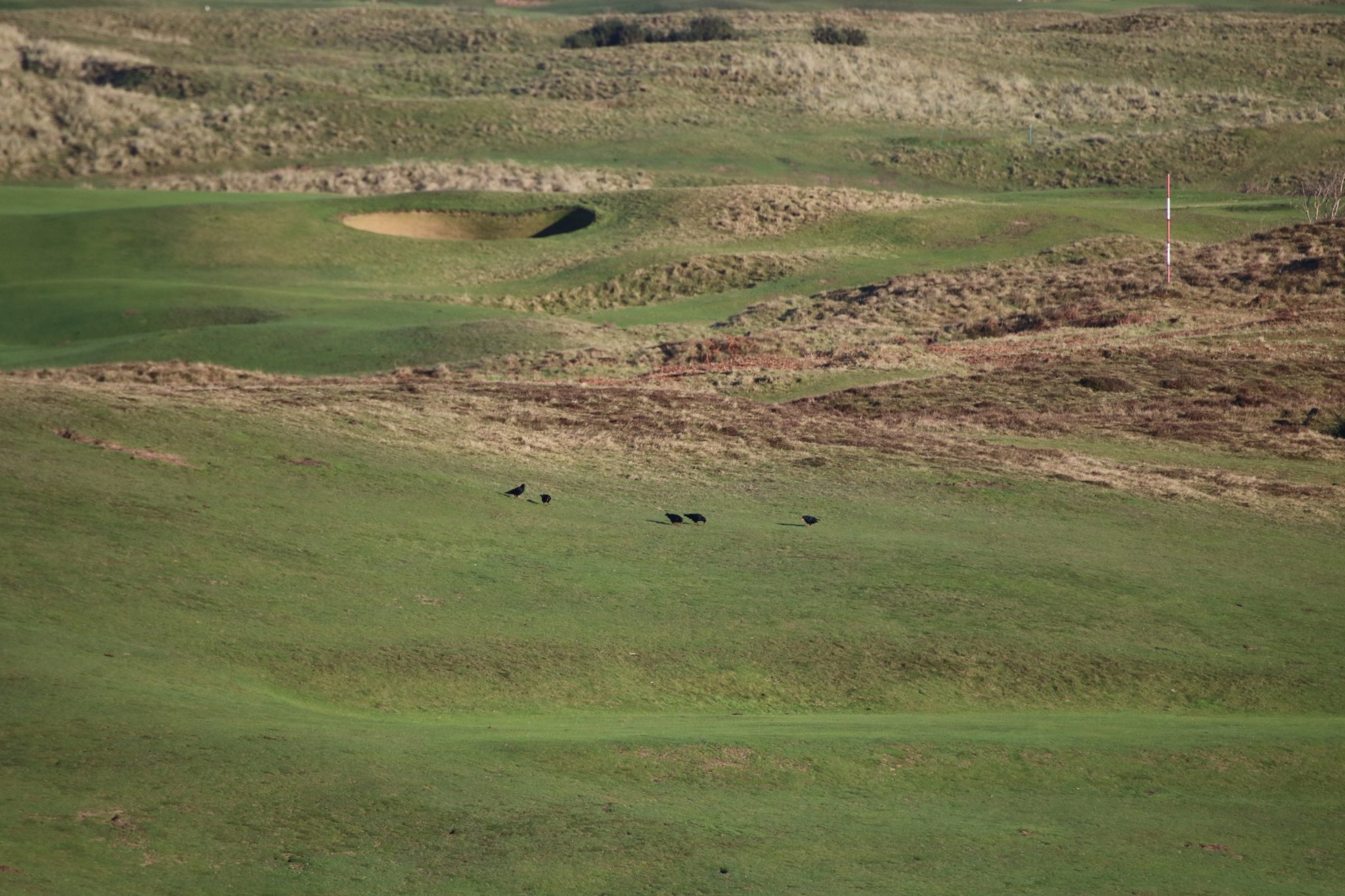 5 chough around the golf course today . 2 appeared very tame and let us approach to about 2 MTRS.. playing golf so no camera unfortunately