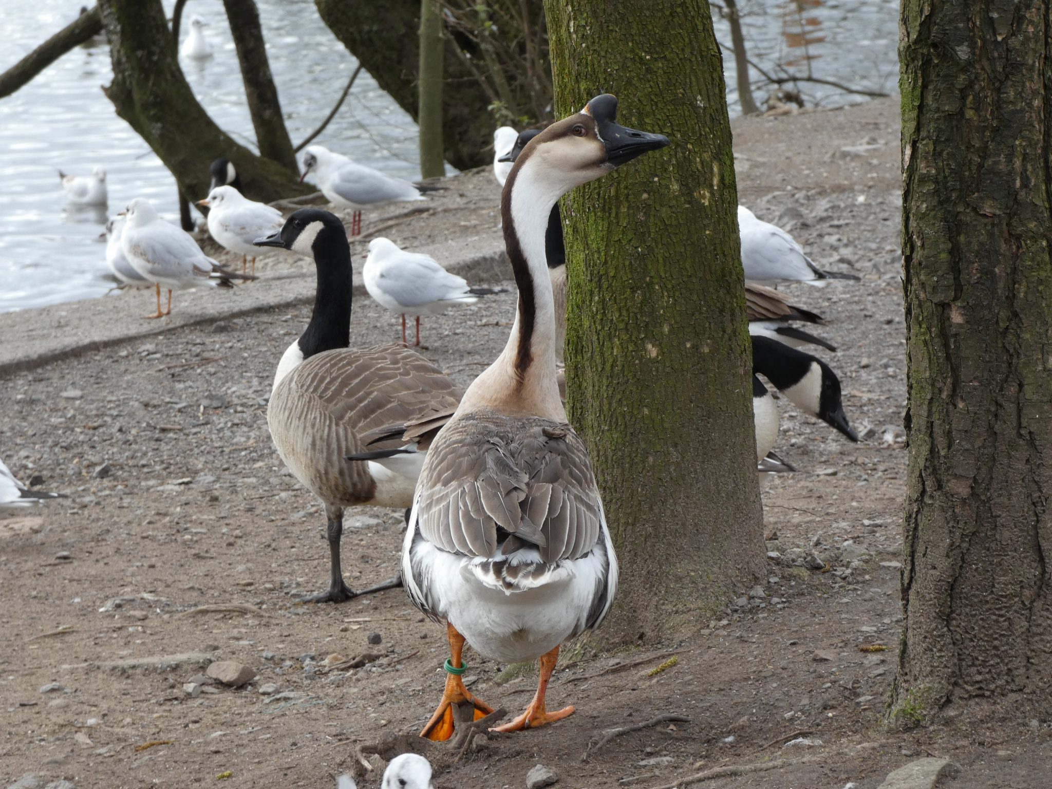 Escapee Chinese Goose, probably bird seen 2 weeks ago on Gnoll Park lake, now at the Ffendrod.