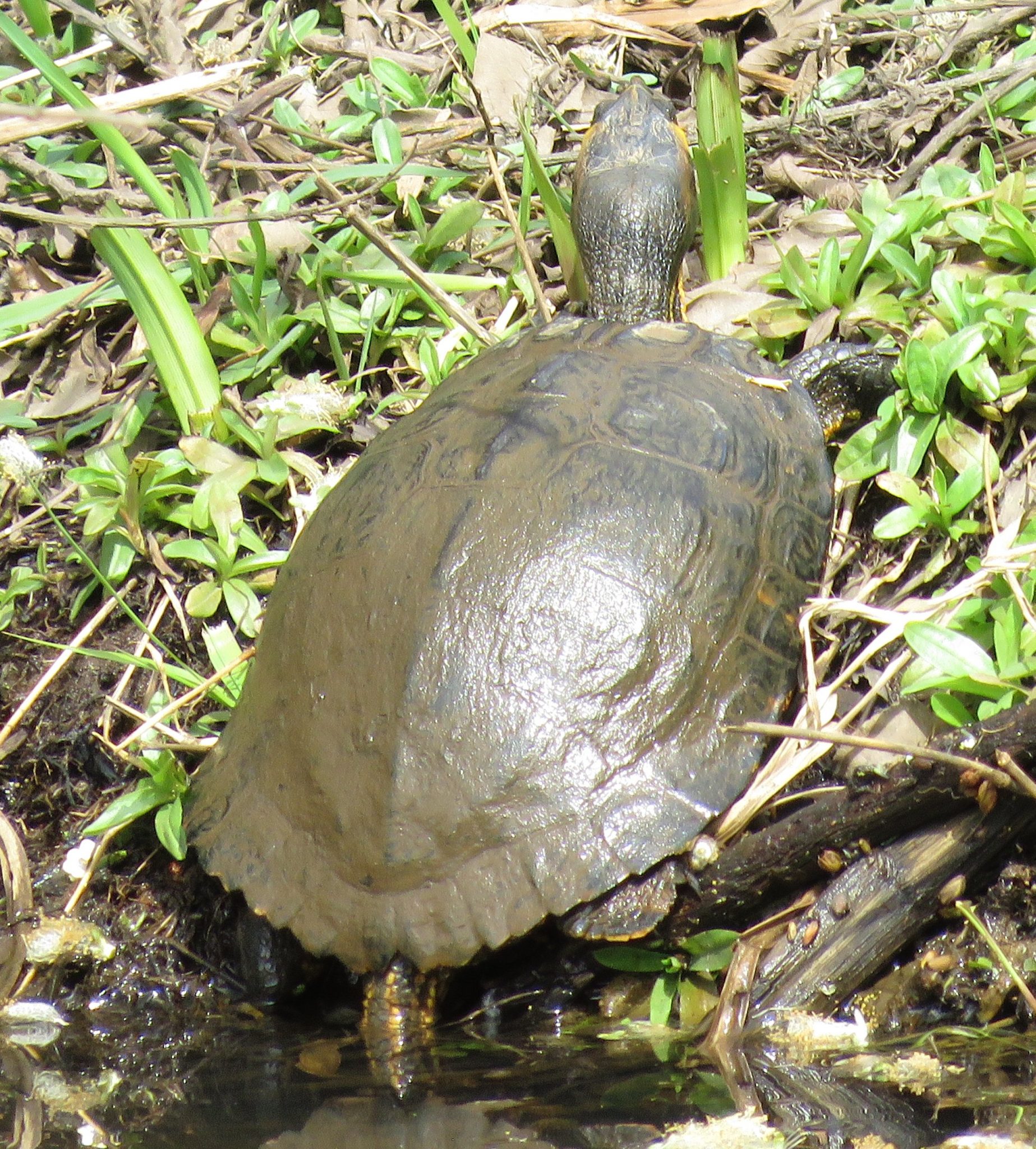 Bro Tawe/Swansea Vale-An array of species which included Teal(2),Tufted Duck(2) Mute Swan( 4 including a pen on nest),Canada Goose(6 including a goose on nest), Blackcap,Willow Warbler,Chiffchaff,Grey Heron, Goldfinch, Treecreeper, Nuthatch, Moorhen(some on nests),Coot and Jay. There were Sand Martins around the nesting bank (up from 1 yesterday-there were also 6 at Pontardawe). A new species for me at this site a pond slider(trachemys scripta) basking on the bank in the warm milky sunshine