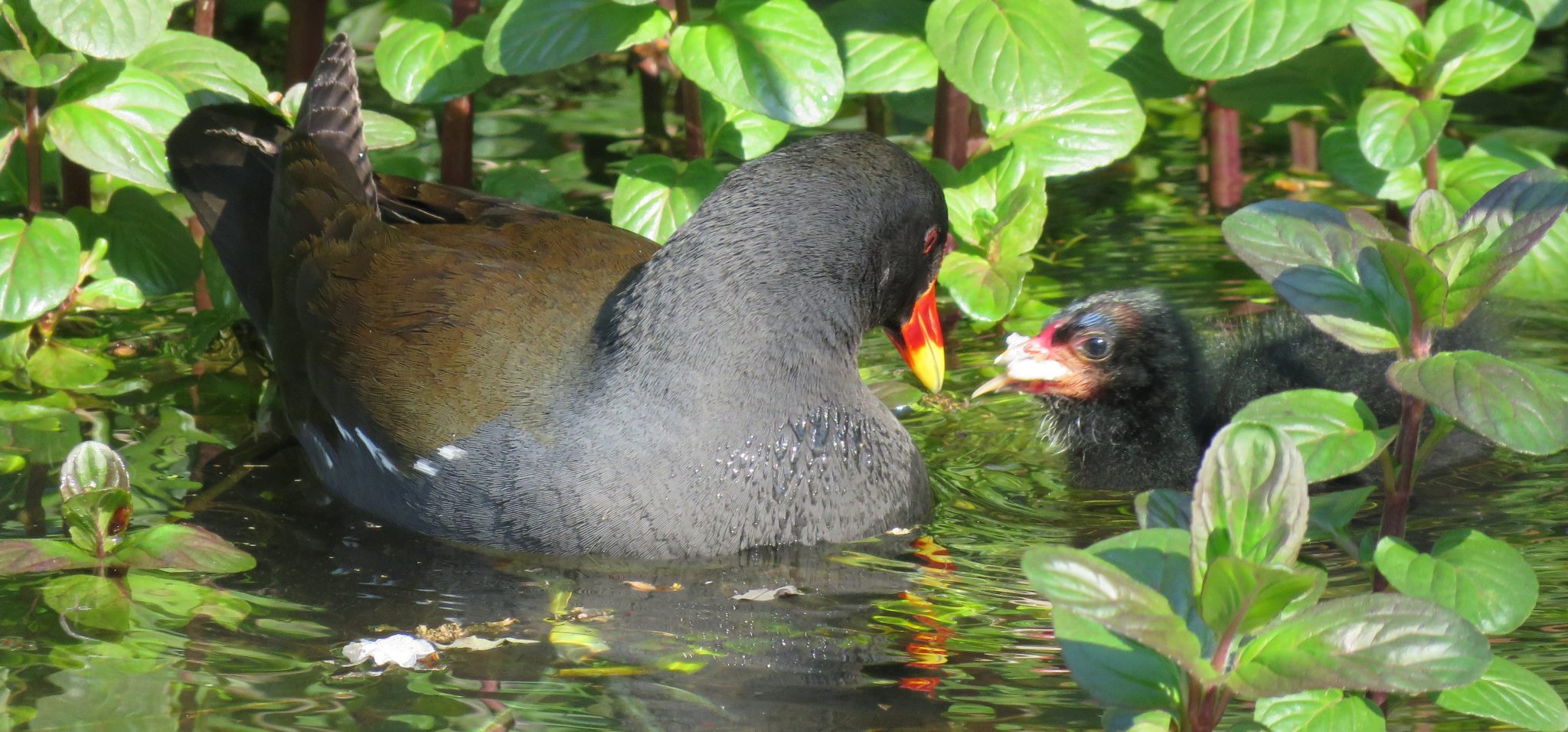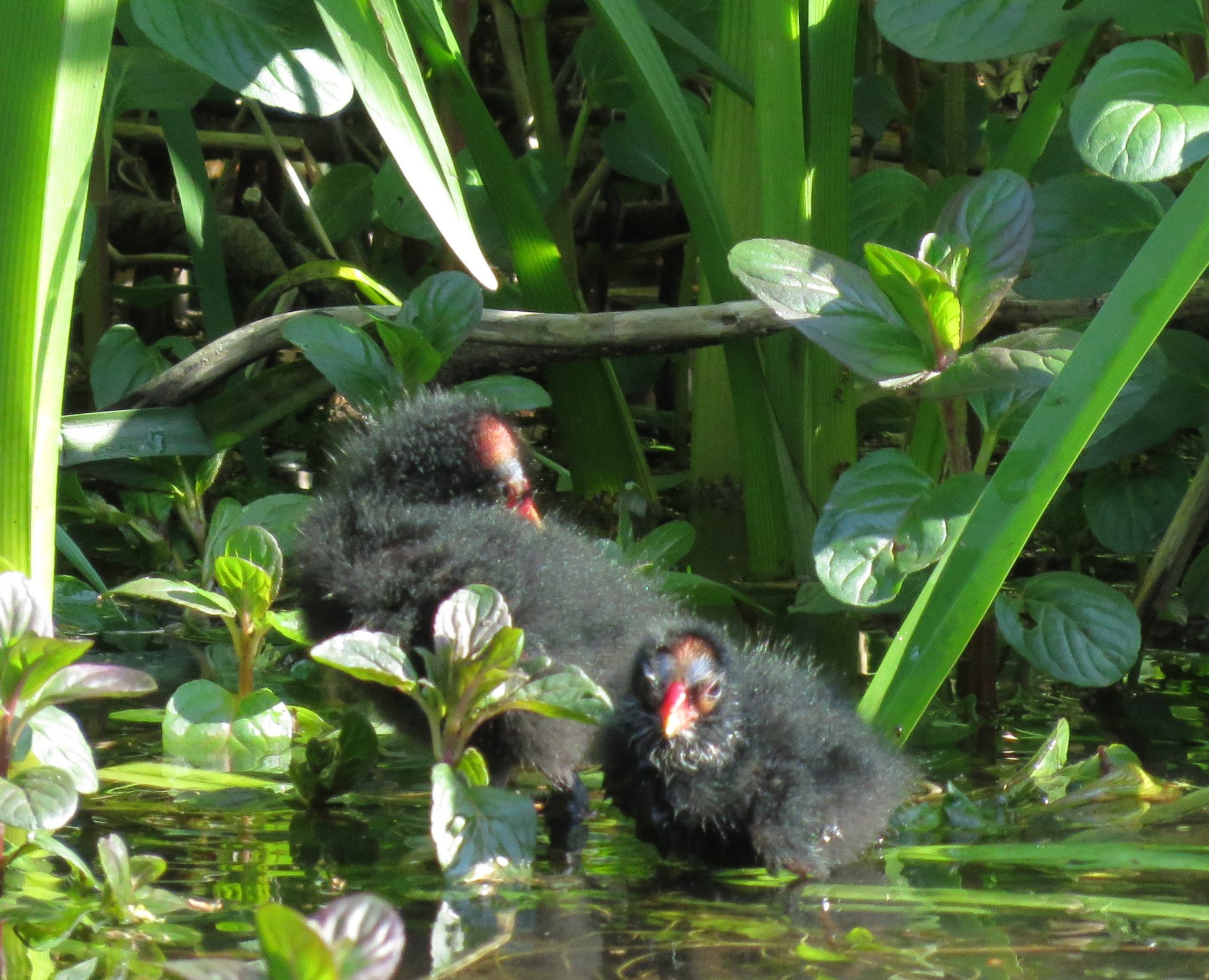 First Moorhen chicks out on the Canal in Clydach. A total of seven. Size difference quite noticeable. They will obviously have to get accustomed to the taste of white bread. Other would be parents appear to be getting tyred of waiting.