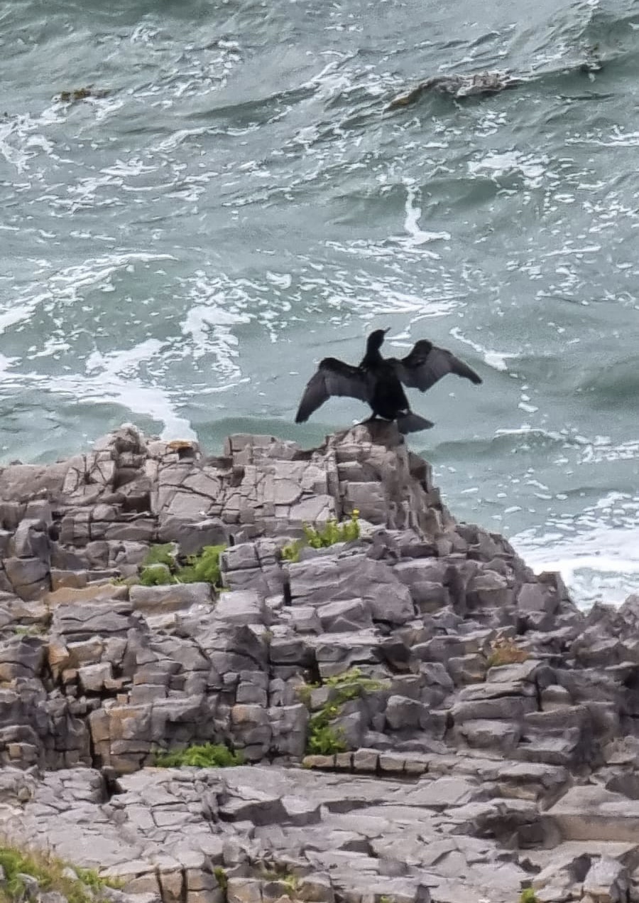 Very blustery morning on the coastal path between Langland and Caswell today. One cormorant, three carrion crows (no chough) and one adult gannet managing very well in the wind.
