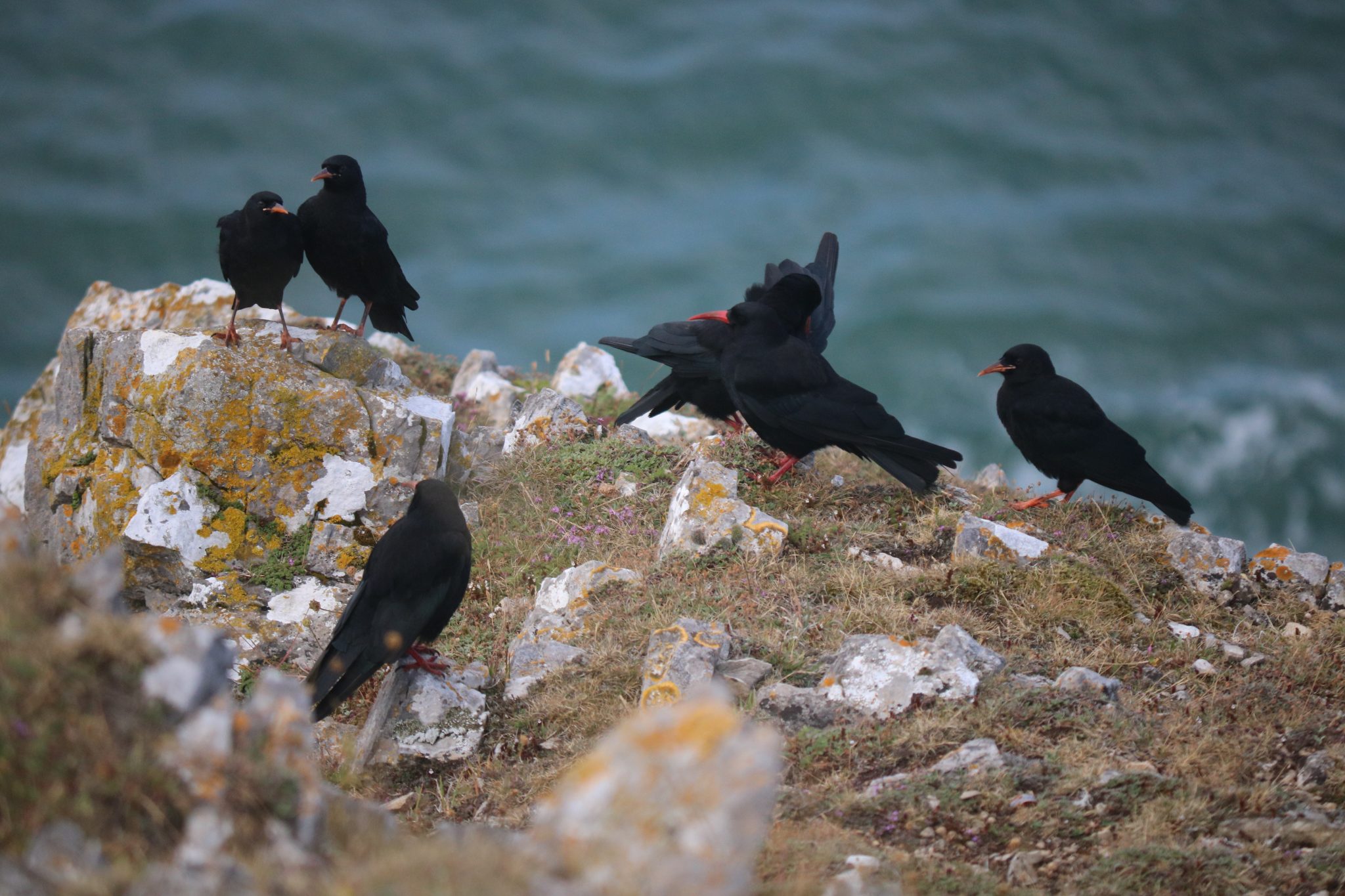 Young chough have finally appeared on the cliffs here. This family of two adults, three young and one (nearest) uncertain seen this morning, along with two other adults. At about 17:30 ten chough past heading west, and at 20:25 five heading east. (Also this morning, about three feet in front of me, a large hawkmoth with very long straight proboscis hovering by thistles and quickly moving on. I assumed a hummingbird hawkmoth from the hovering, but after consulting an insect book I though the one I had seen was much bigger. Is this unusual? Couldn’t identify wing colours because they… Read more »
