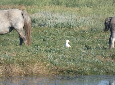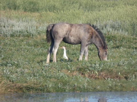 Cattle Egret at Penclawdd Marsh on the 14th. It was associating with the local group of horses (see pics). Also, a good variety of songbirds. Singing Blackcap, Whitethroat, Chiffchaff and Willow Warbler. Lots of Meadow Pipit and Reed Bunting in the grasses and reeds as well as a singing Skylark.