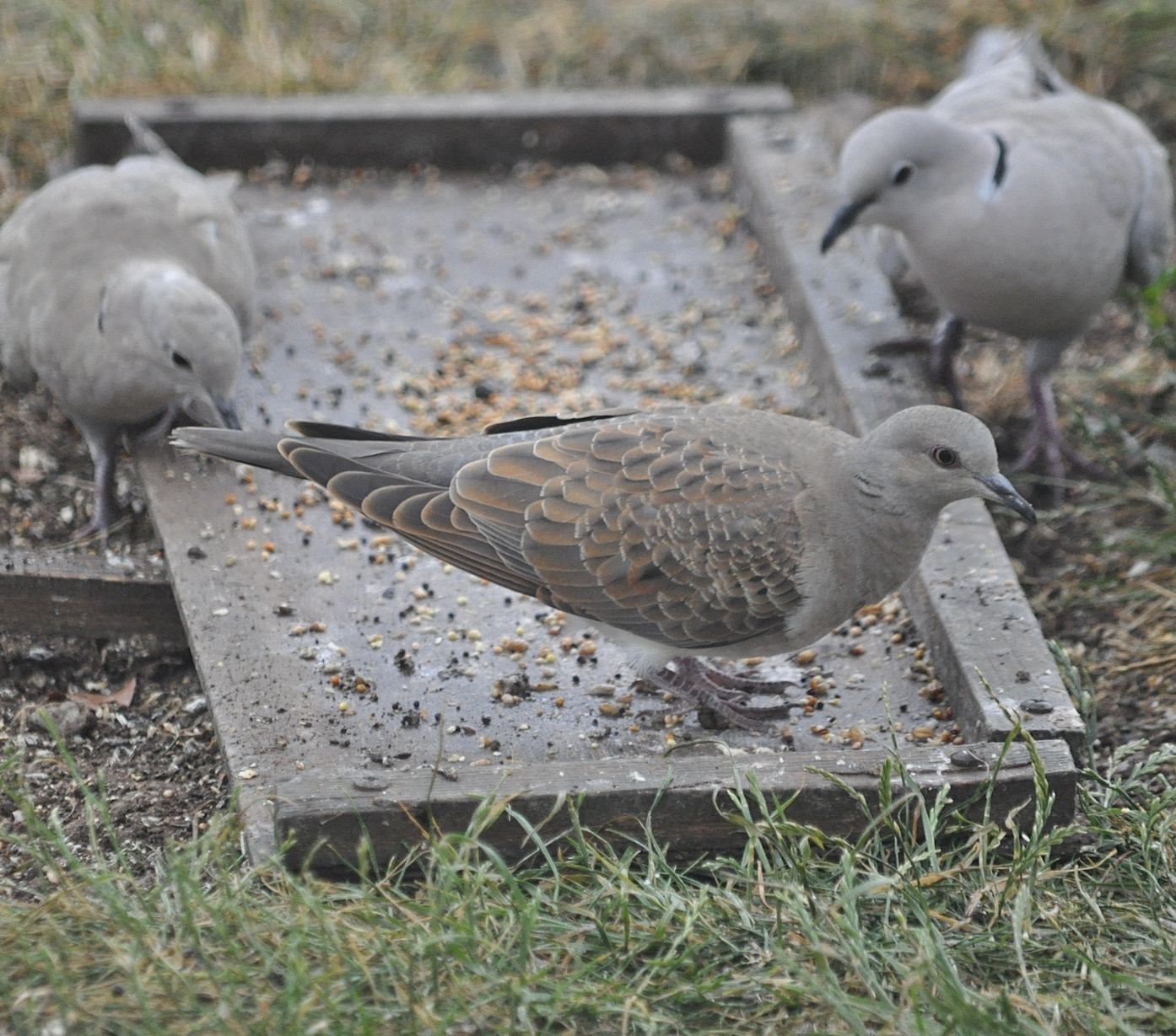 Turtle Dove just returned to my garden after being absent for almost two weeks. Ringed on right leg, will try and identify ring if it returns tomorrow.Recorder informed.