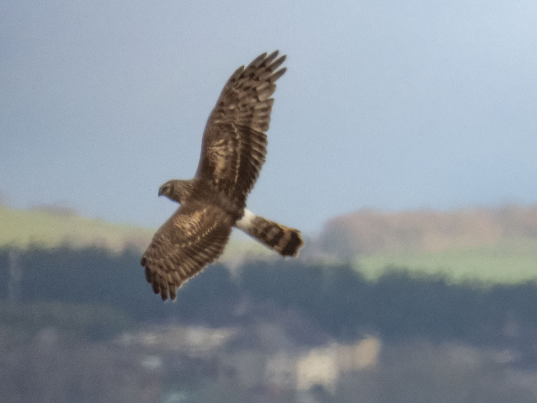 Not very good photos but I saw this hen harrier in a brief skirmish with the second bird which I am guessing is a Merlin just after noon above the marsh track from Cwm Ivy to Whiteford Point. They both flew off apparently unharmed.