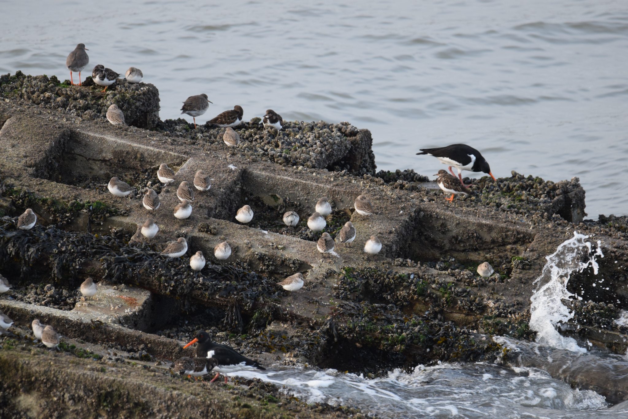 Mumbles old lifeboat slipway at 1530. More dunlin joined the party – now 70 with 6 turnstone and 2 redshank. Female scoter flying around in circles offshore, settling for brief stops then flying off again, seemed agitated ? lost the flock.