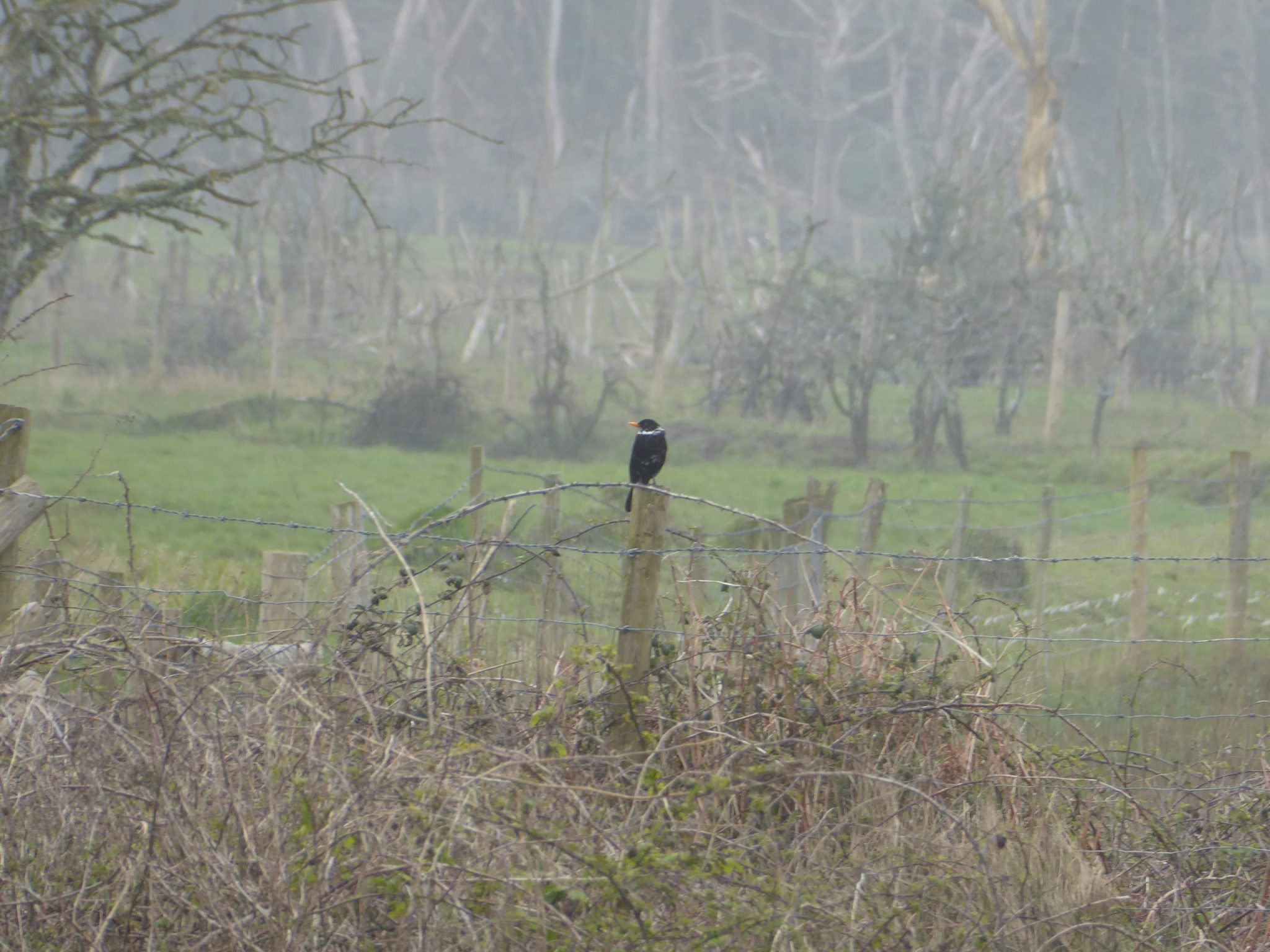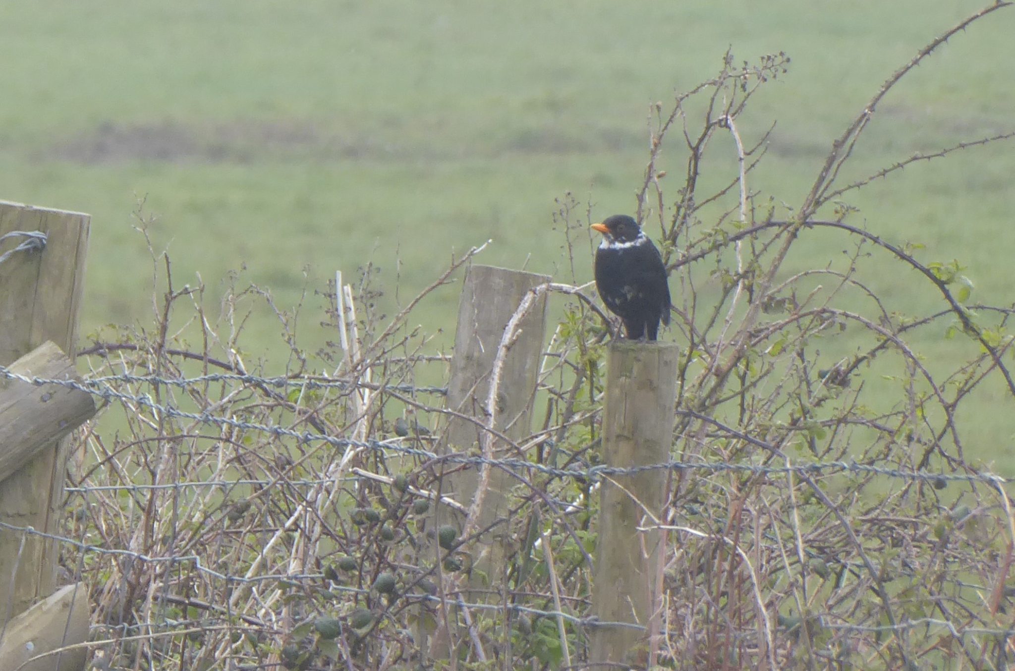 Blackbird, pictured, doing a surprisingly good impersonation of a ring ousel near entry into forest from lane from Cwm Ivy.