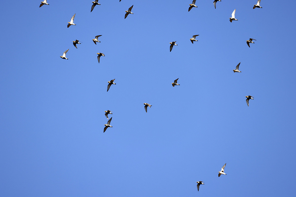 Late afternoon on Cefn Bryn: golden plover numbering exactly 63+1 individuals. The “+1” is a grey at bottom right of photo. (Not sure til I post it, if I have sized it wrongly.)
