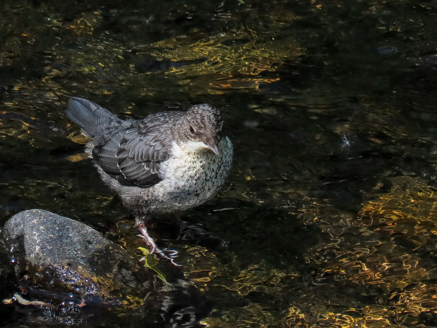 Recently fledged juvenile dipper, on the river Dulais at Treforgan Crynant today.