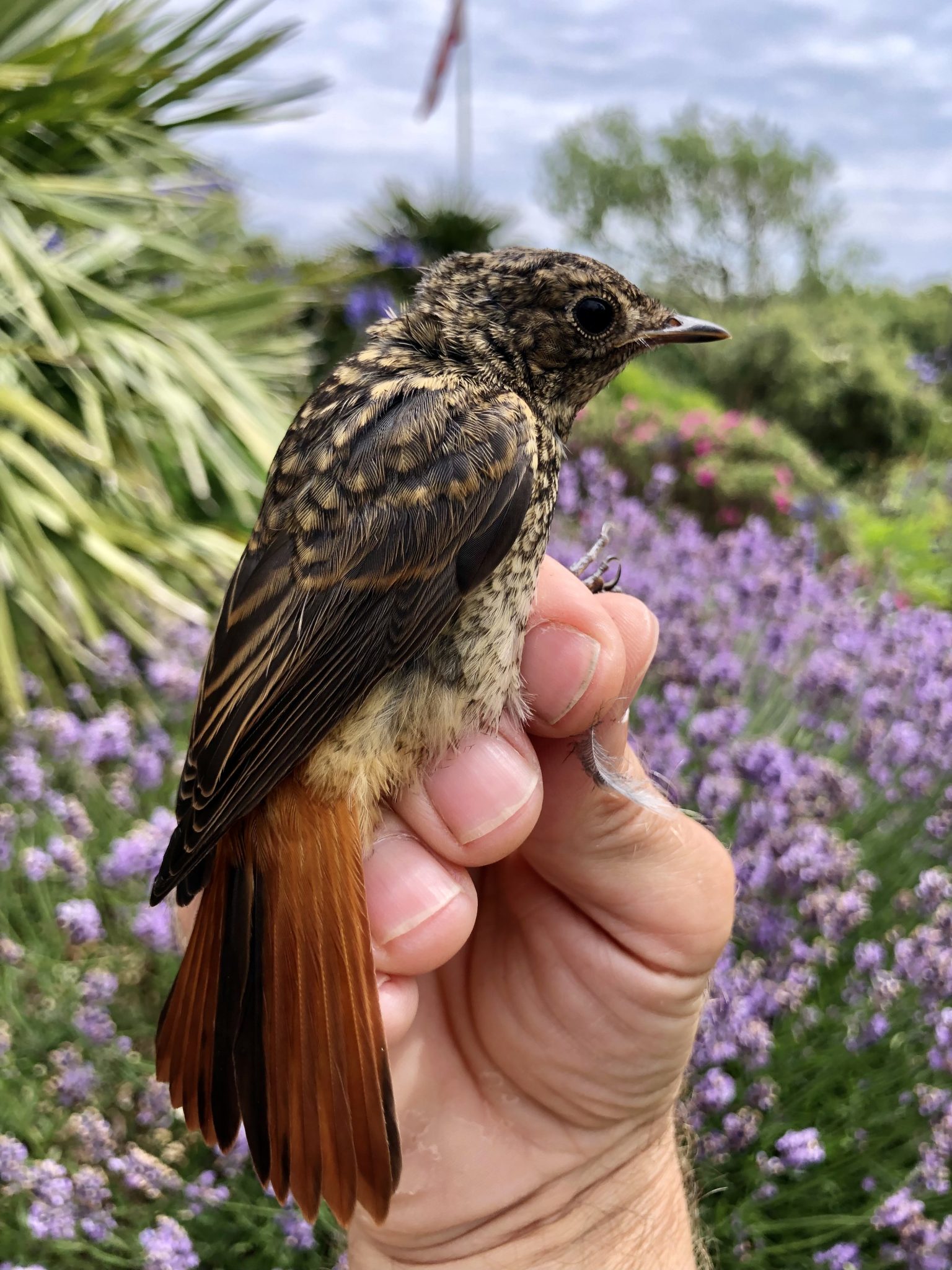A very young Common Redstart was an interesting bird to capture and ring in my garden on Pennard Cliffs this morning. It’s a new species for the site and appears to have likely originated from a relatively local nest site judging by its age.