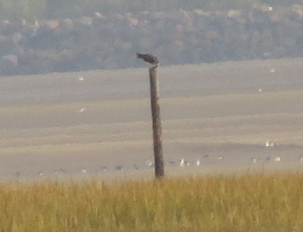 Amazing views of a juv Osprey eating a fish above the A465 slip lane at Tonna, here pic from the layby much further down so is distant . Ace to drive under it several times. it was present at least 50 mins finishing the fish.