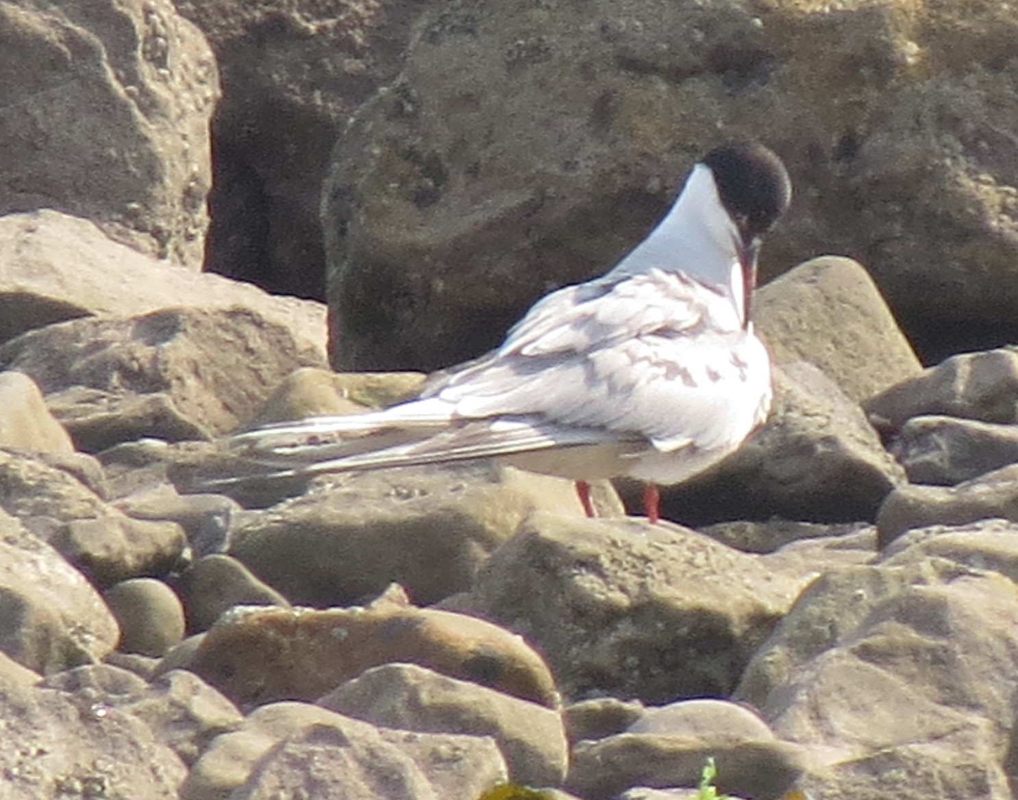 Not sure that closed wing pattern is right for Roseate, although the feathers are displaced, leg colour looks rather red as opposed to orange but that may be due to colour rendition.