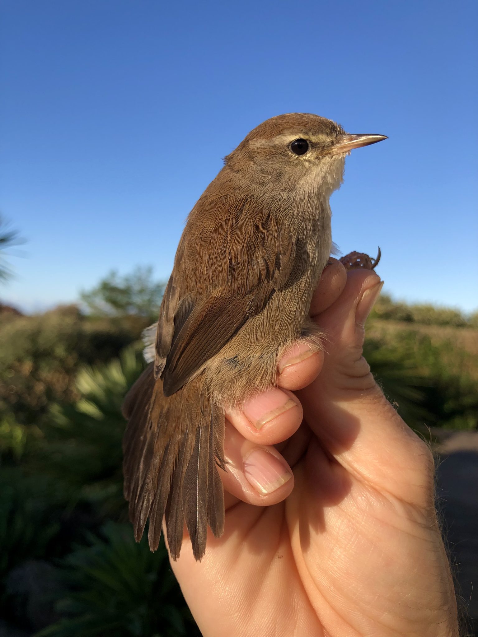 I caught a second ever Cetti’s Warbler for the garden here on Pennard Cliffs this morning, the first one having been caught in late October 2024. This individual was in amongst a group of Chiffchaffs moving eastward along the cliffs after dawn.