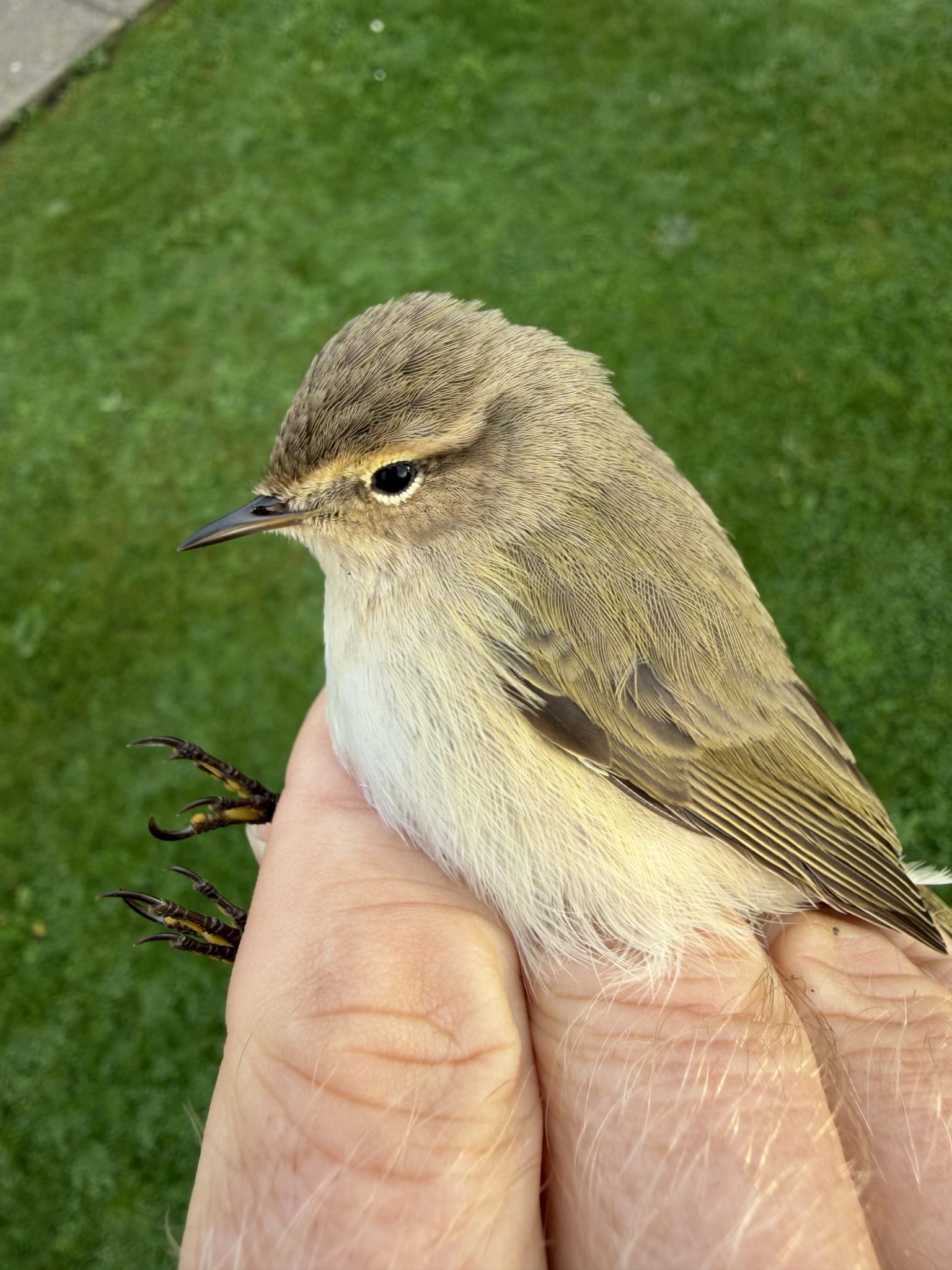 Siberian Chiffchaff (Phylloscopus Collybita Tristis) caught and ringed on Pennard Cliffs this morning.