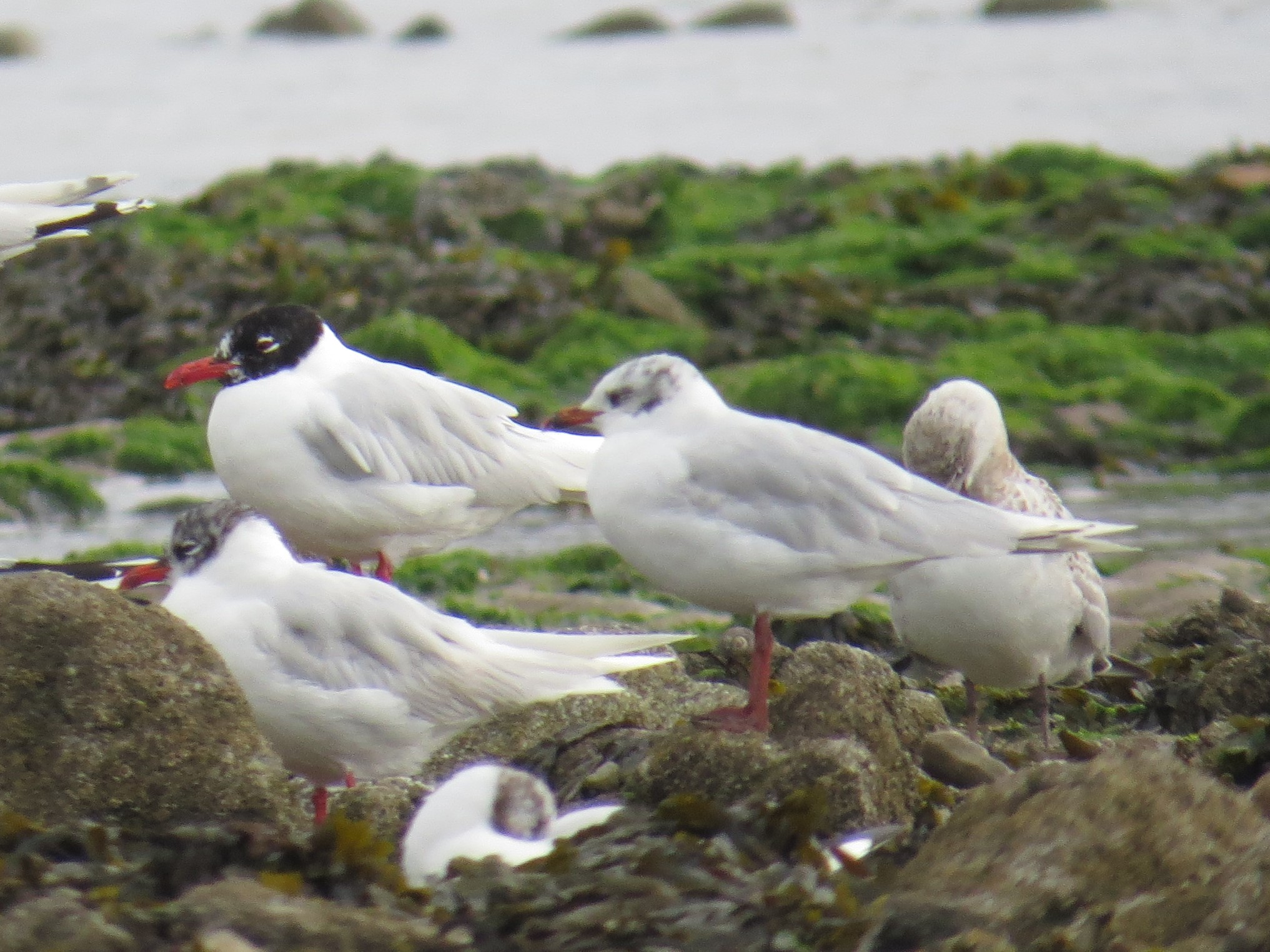 19 Med and 11 black-headed gull on the western of the Sketty Lane playing fields this morning.