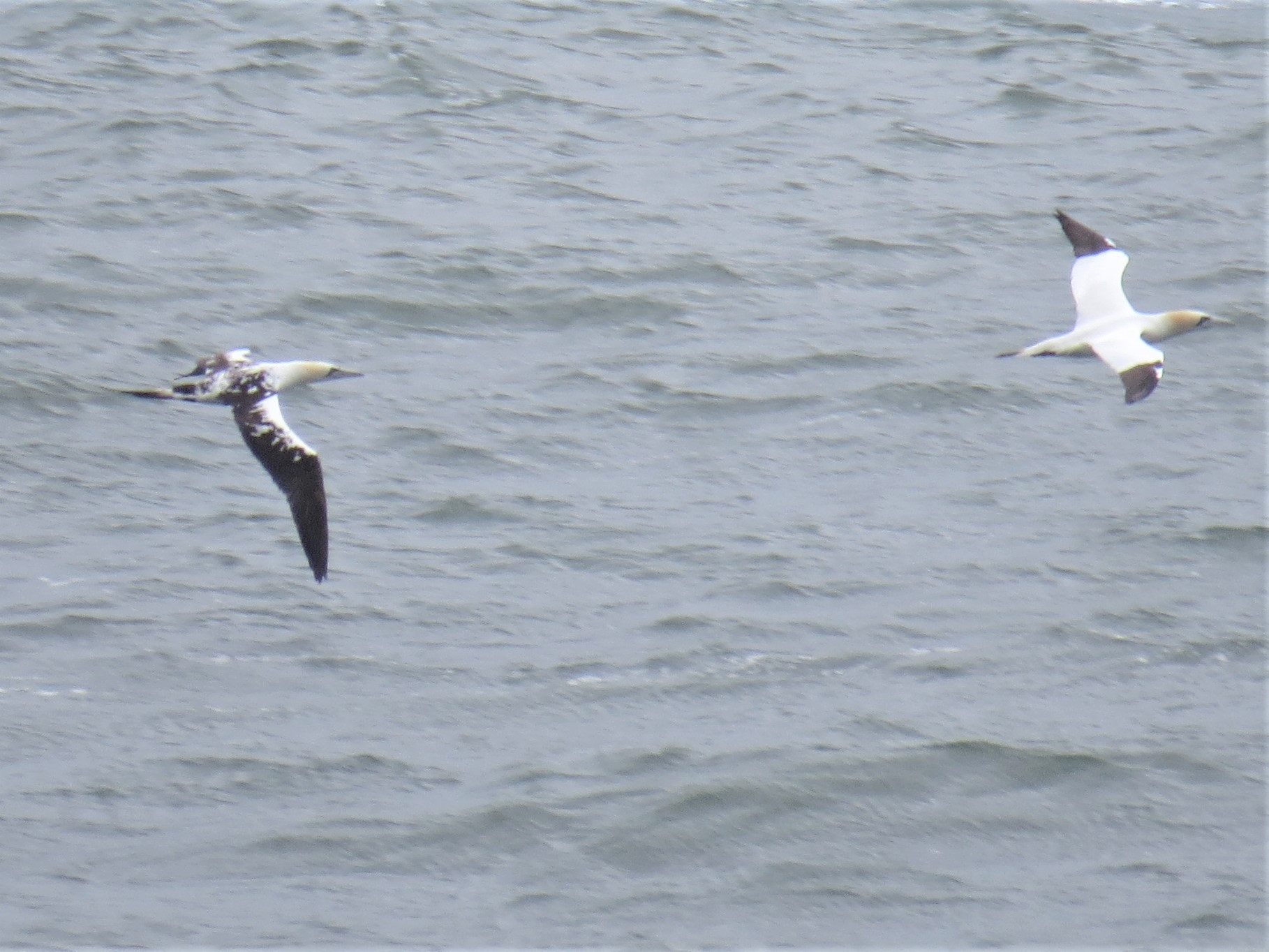 Port Eynon 1400-1530hrs. Gannet 61, Fulmar Petrel 1, Manx Shearwater 18, all down channel, Sandwich Tern 2, one of these was colour ringed apparently ringed in Wales (Cemlyn?), Whimbrel 1, Ringed Plover 12, Sanderling 7.