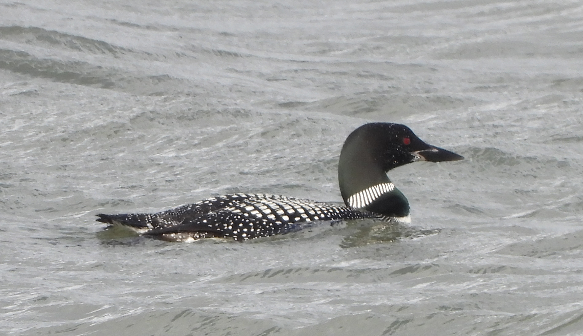 15:00 at Knab Car Park 3 Great Northern Divers swimming together, eventually splitting apart into two groups. Briefly saw two different divers very far out on the water.