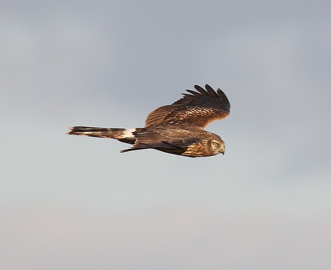 Salthouse Point afternoon Hen Harrier, looks from pictures like an adult female, 3 scaup mid channel 2 female 1 male.