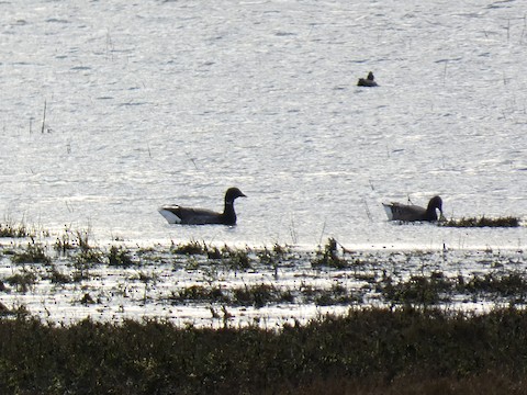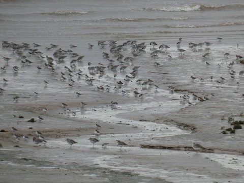 Good at Whiteford Point his morning. Eider, 200 brant, 350 knot, 1000 dunlin, 100 grey plover, 3 green woodpecker, 1 peregrine falcon, and a crossbill. Photos of brant and waders.