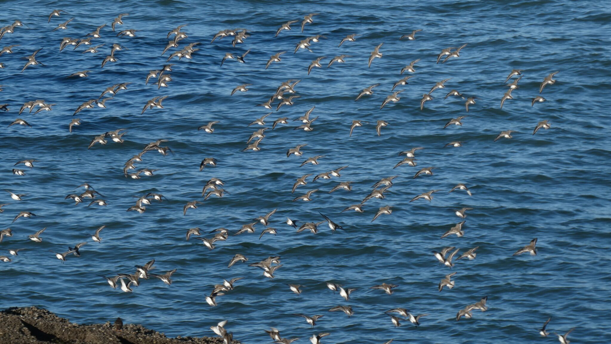 The old lifeboat slip. About 200 Dunlin.