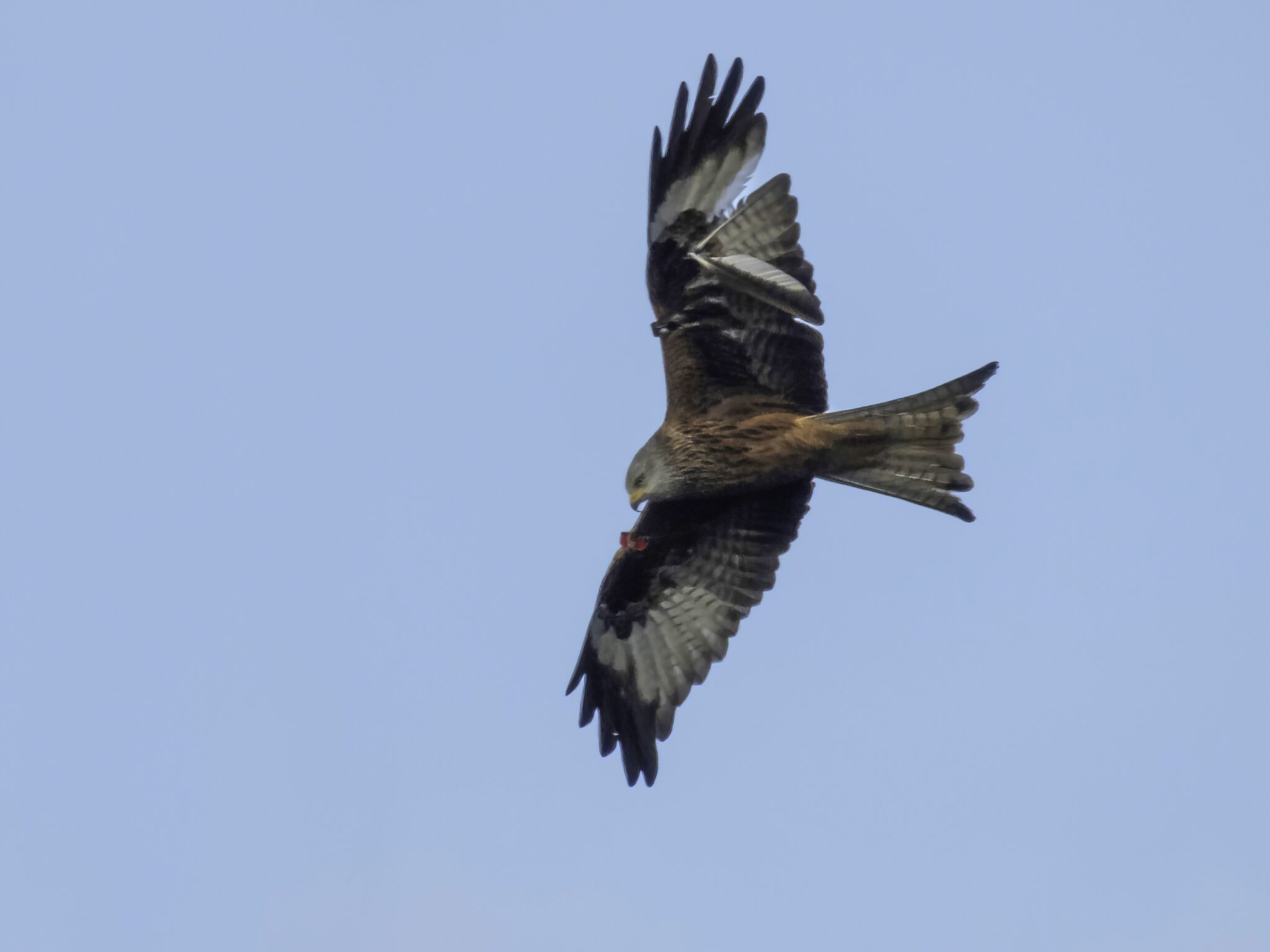 A wing-tagged red kite over Pen-y-Gaer, Penclawdd this morning.