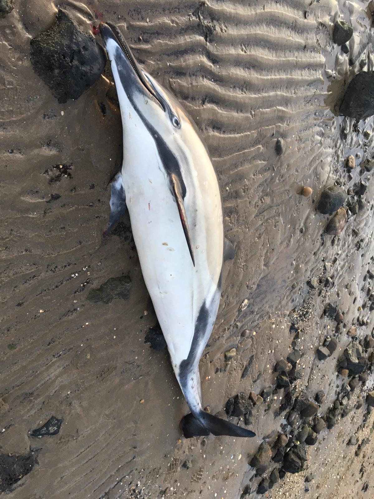 Two common dolphins washed up dead on the beach at West Cross this morning.