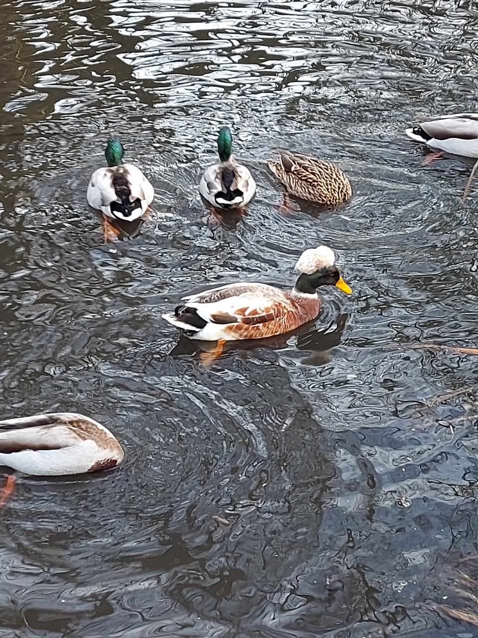 Mistle thrush at bottom of garden guarding the holly tree. Seeing off magpies + blackbirds seeking to eat ‘his’ precious berries. Also walk by Fendrod lake – flock of 40-50 greenfinches feeding through the trees.
