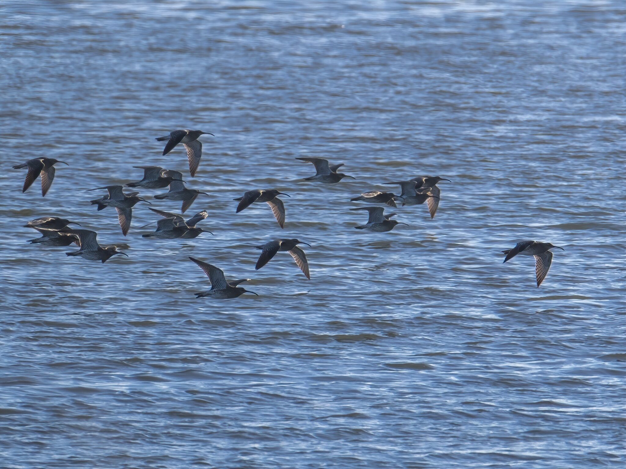 Whimbrel rather than Curlew. Good numbers migrating at the moment.Always a challenge when they are in flight