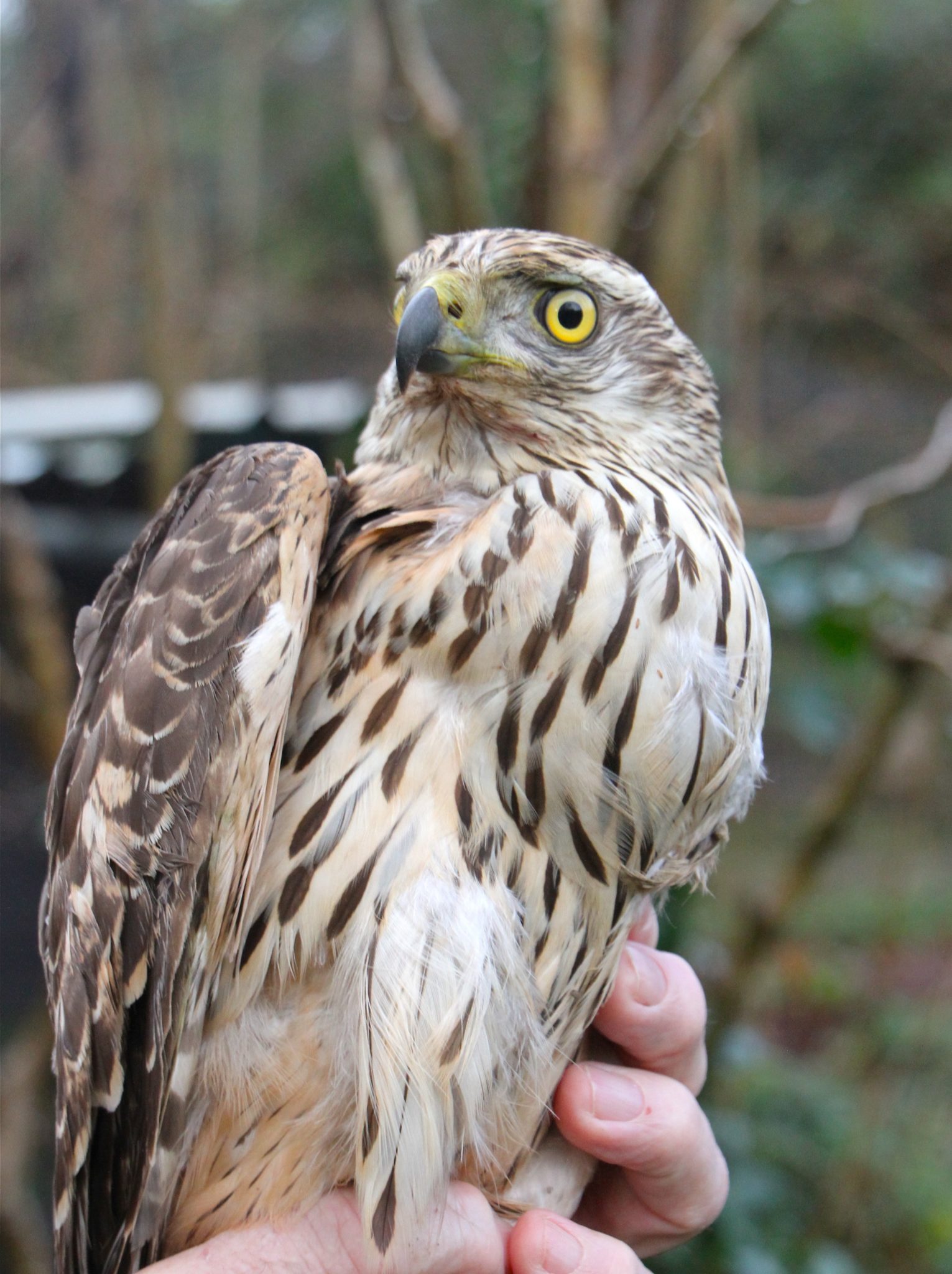1st winter female goshawk captured in a chicken coop near Murton yesterday. No evidence of previous captivity (scarce as a breeder in Gower) and assumed to be locally-bred bird. Under weight (albeit it was eating a bantam when discovered), and taken to Gower Bird Hospital for rehabilitation. Photo courtesy of Keith Vaughton.