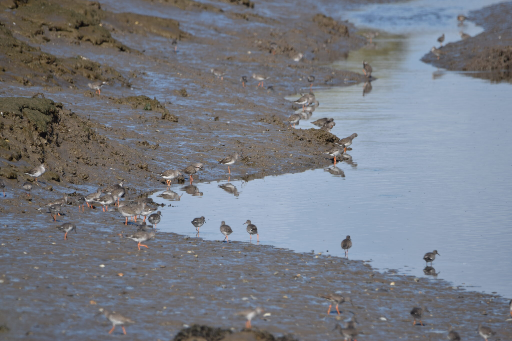 Aug 23 Penclawdd 10.00: 138 redshank, 1 common sandpiper, 4 little egret, 2 grey heron, 2 curlew, c40 greylag, 1 oystercatcher, 1 cormorant, 1 great crested grebe.