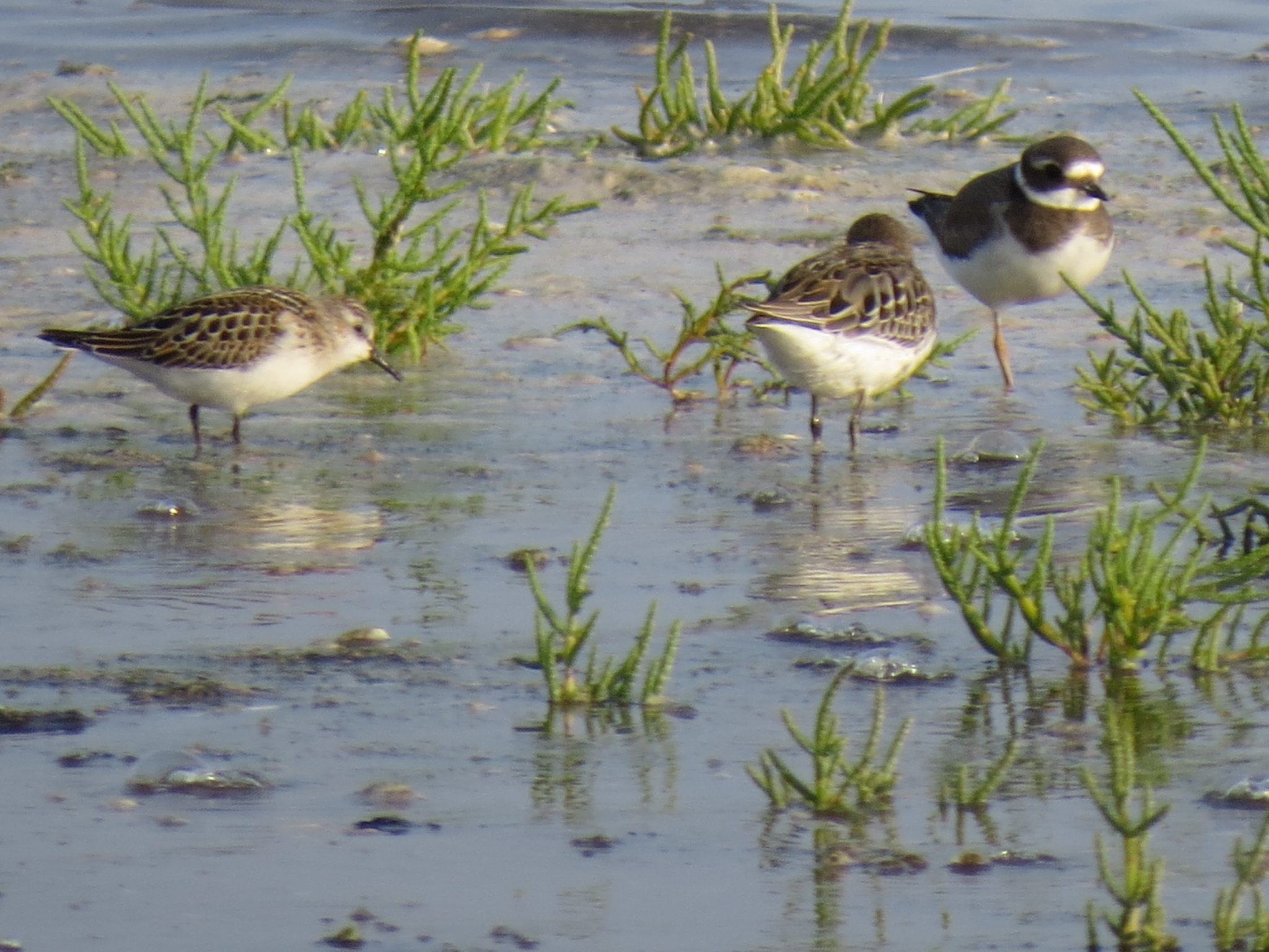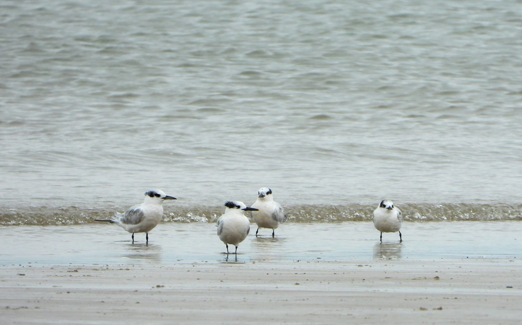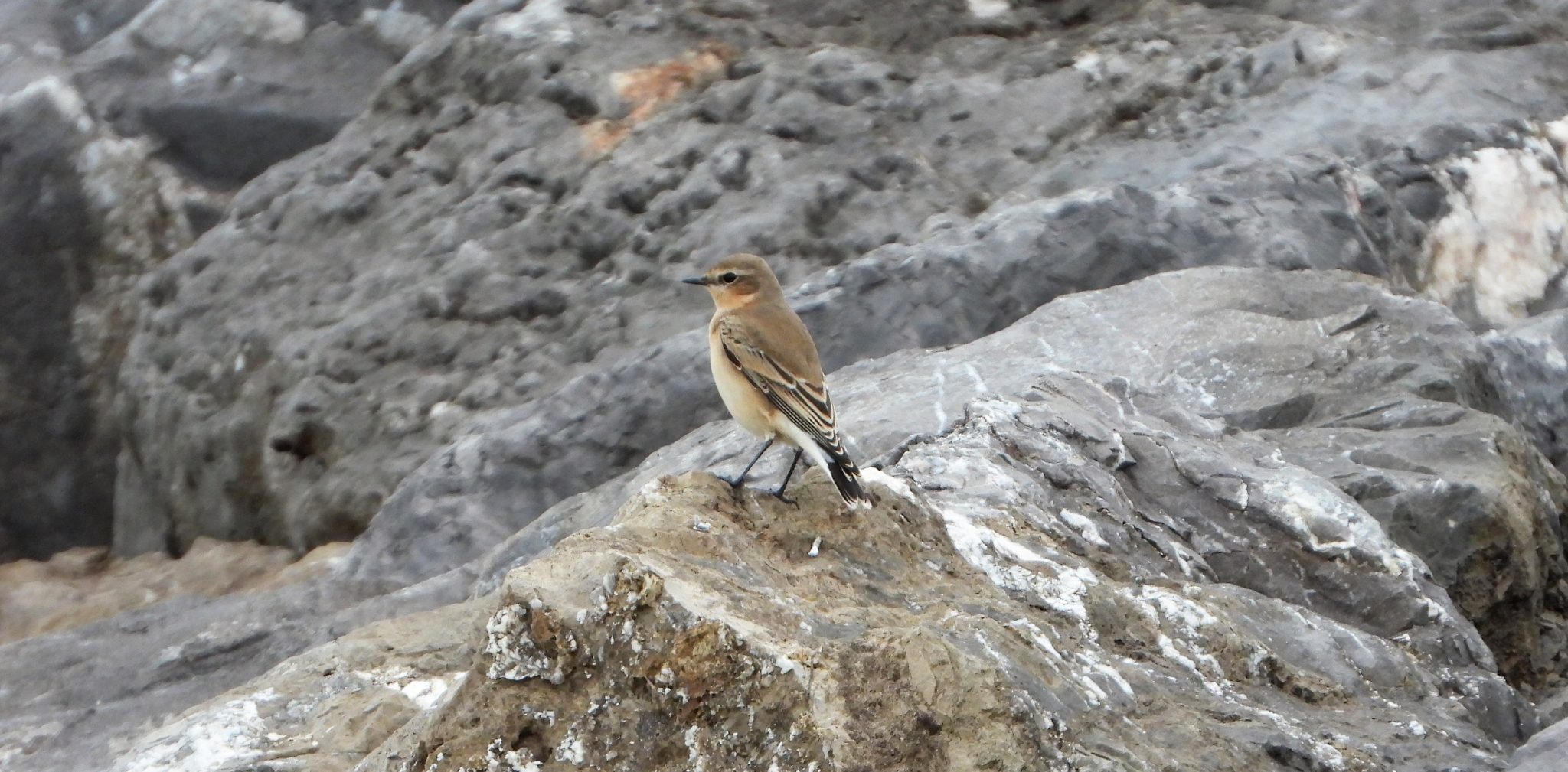At Aberavon Beach, 4 Sandwich Tern (2 adult & 2 1stW), 4 Med Gull (inc. yellow “AY.LC”), 10 Oystercatcher and 2 1stW Wheatear on the rocks.